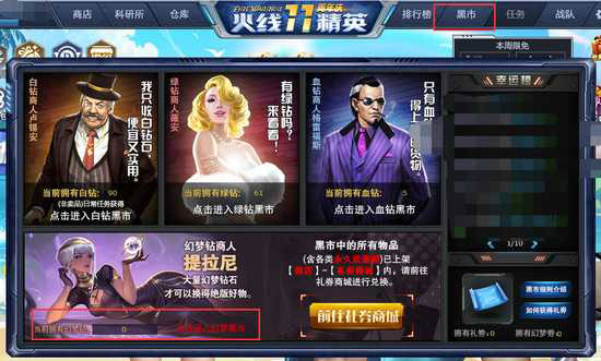 通过“黑市”-“幻梦钻商人”界面,可查看当前拥有的幻梦钻数量。