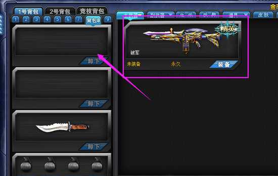 答:如下图,个别玩家仓库中拥有该武器,但却出现无法装备至背包情况。