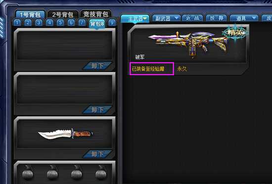 如下图所示,该武器是因为被装备至经验罐后,才无法装备至背包。