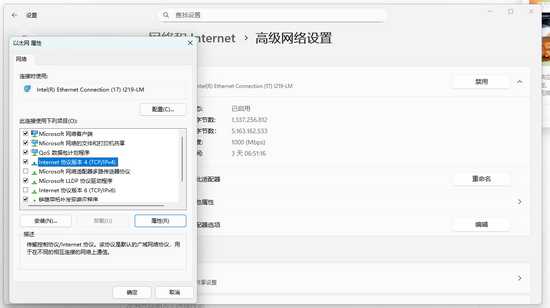 ② Windows10及以上系统:在「网络和Internet」中找到高级网络设置,点击更多适配器选项。找到「Internet 协议版本4」,选中后点击属性,使用以下公共DNS(如8.8.8.8或114.114.114.114);