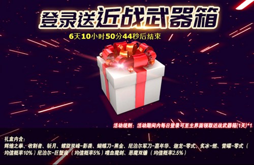 【活动规则】活动期间每日登录游戏都可在主界面一份获得近战武器箱。