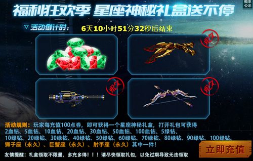 【活动细则】每充值100点券即可获得一个星座神秘礼盒。