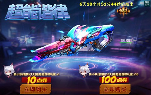 【活动细则】活动期间每次购买狐小妖表情1天可获得超能谐律礼盒*1;购买10天表情可获得超能谐律礼盒*10。
