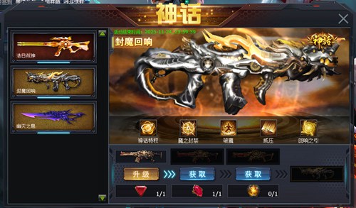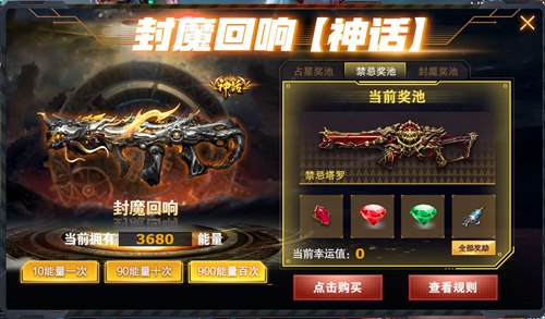 ④点击封魔之心下方的“获取”按钮可通过“封魔奖池”获得封魔之心,将武器升级为封魔回响。