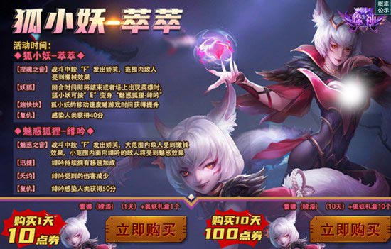 购买蕾娜喷漆1天即送狐妖礼盒一个。购买10天喷漆送狐妖礼盒10个。