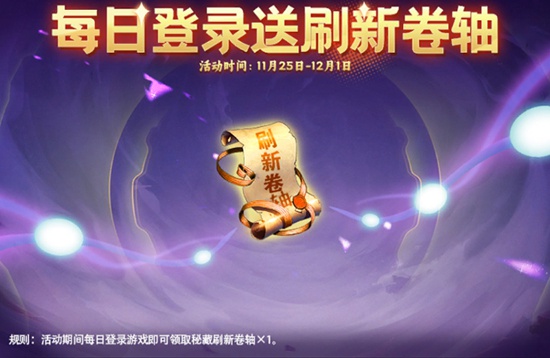 【活动规则】活动期间每日登录游戏可获得秘藏刷新卷轴1份。