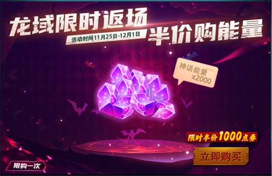 【活动细则】活动期间可以1000点券价格购买神话能量*2000,期间每个角色限购一次。