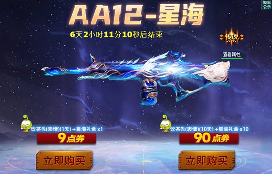 ②每次打开礼盒都能增加幸运值,幸运值满时立刻获得AA12-星海(永久)