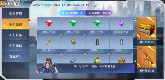 【参与方式】主界面右侧“老兵回归”按钮,选择“回归签到”页面