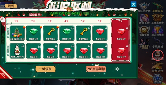免费领取:喷漆-圣诞快乐、绿钻石*10、军备钥匙*2、绿钻石*10、军备钥匙*3、血钻石*10、血钻石*20