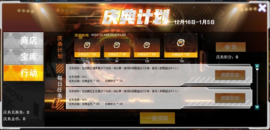 ①完成面板描述的“每日任务”即可获得任务奖励——庆典币和庆典积分