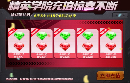①活动期间每天充值任意金额,都会有钻石奖励,直到累计满5天为止。