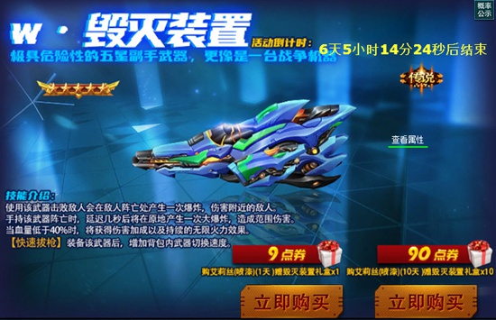 【活动细则】限定时间内,凡购买艾莉丝喷漆(1天),即可赠送毁灭装置礼盒*1。买喷漆(10天)送毁灭装置礼盒*10。