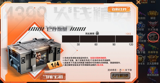 ②活动期间内共4个宝箱, 每个宝箱在完成2个任务时自动开放解锁,玩家可花费一定金额解锁宝箱。解锁宝箱后,不可再完成该阶段任务(不积累返利积分)!
