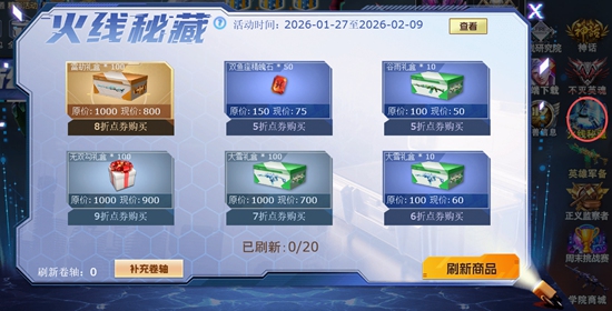 ①打开界面可看见随机6个火线秘藏,每个秘藏会显示原价和折扣价。