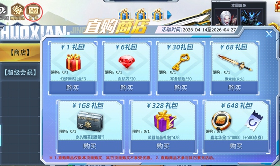 【活动入口】主界面“直购”按钮,界面中“购买”按钮可购买