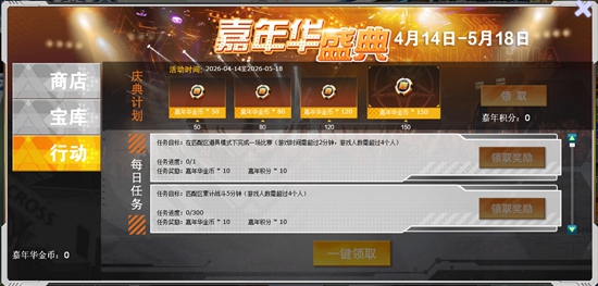 ①完成面板描述的每日任务即可获得任务奖励——嘉年华金币和嘉年积分