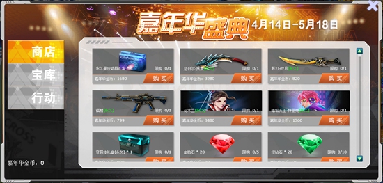 【活动细则】消耗嘉年华金币即可在本界面购买指定商品道具
