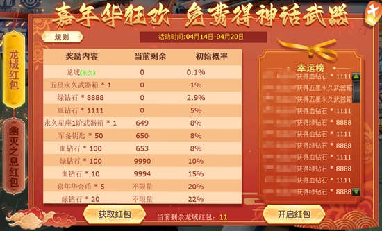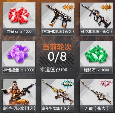 ③一旦获得嘉年秘钥,就会自动轮转大奖池抽取奖励。同时幸运值会清零