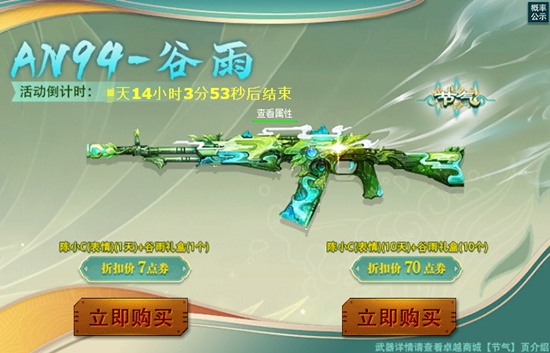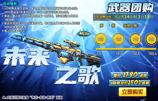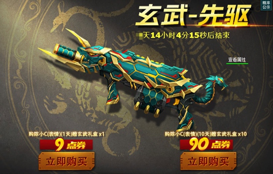 【活动细则】点击“立即购买”即可获得武器“镭射”+600点券,此外累计登录游戏还可以额外获得点券,具体如下:
