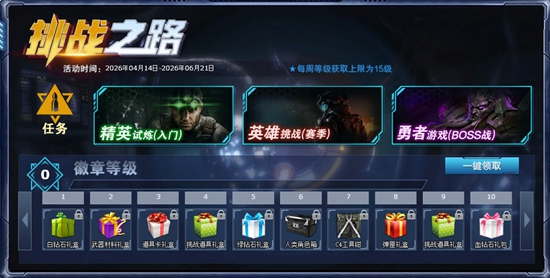 第三档:磨难难度通关,可以获得 挑战武器礼包*1(四星挑战武器3天)、复活币*15