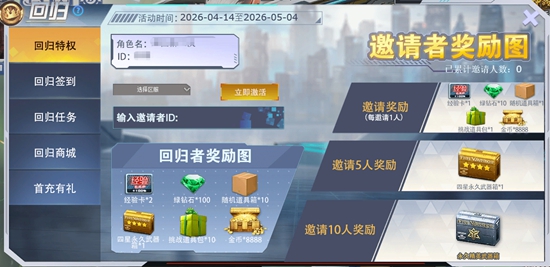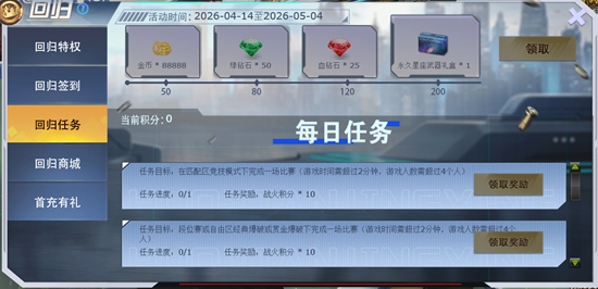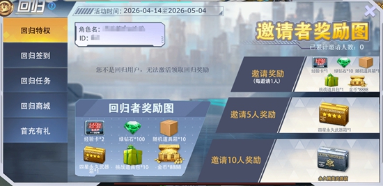 【参与方式】主界面右侧“老兵回归”按钮,选择回归任务页面