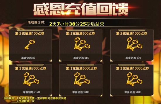 累计充值满100点券:得军备钥匙*2