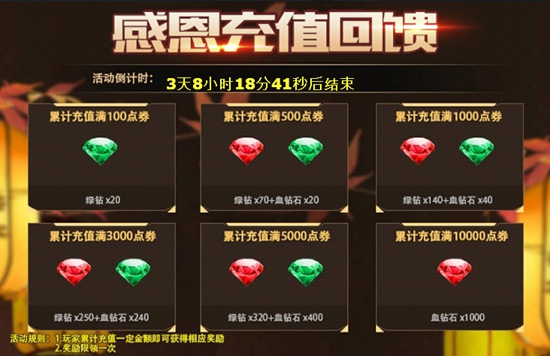 累计充值满3000点券:得绿钻*250+血钻*240