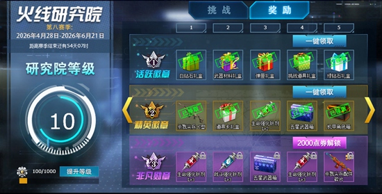②完成“挑战”标签页下的“每日挑战”、“每周挑战”、“赛季挑战”内容,即可获得经验提升“研究院等级”。