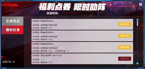 ④部分任务每日0点刷新,刷新时会清除未领取的福利点券。任务请在完成当日的0点前及时领取