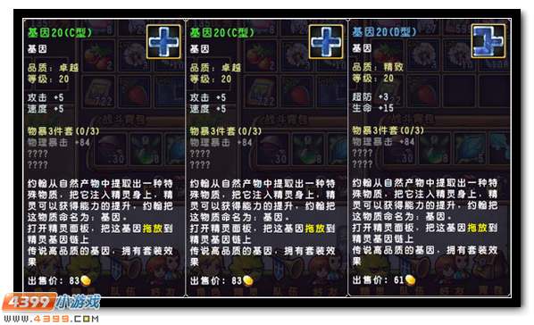 经精灵学院研究表明,并不是所有基因都能有套装效果的,品质影响是否含有套装效果: