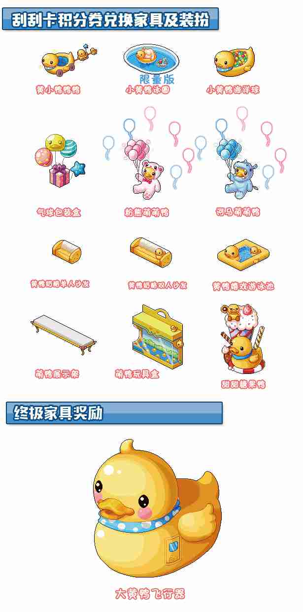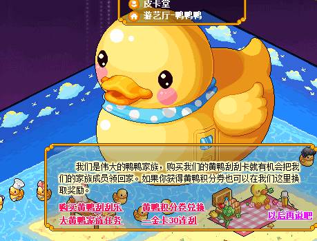 小贴士:黄鸭刮刮乐可刮出各种鸭子、银币以及黄鸭积分券,黄鸭积分券可用来兑换奖励