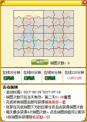 2、玩家在活动时间内最多获得36次小奖励,完成所有拼图后无法继续拼图。