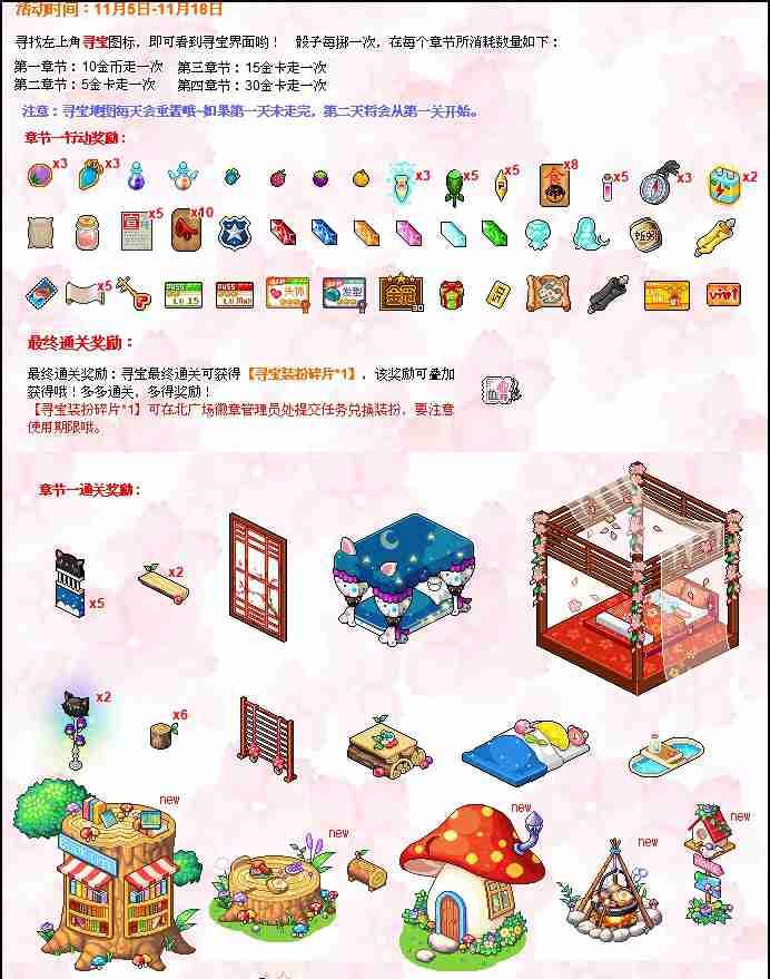 最终通关奖励:寻宝最终通关可获得【寻宝装扮碎片*1】,该奖励可叠加获得哦!多多通关,多得幻影!