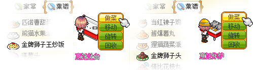 3、金牌狮子王炒饭要使用烹饪灶台制作;金牌狮子头要使用烹饪炸炉才能制作!
