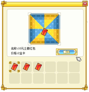 10元红包购买需要:2金卡。