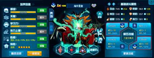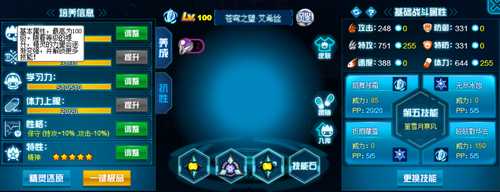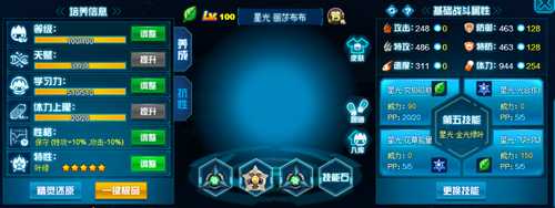 | 五彩芒星 | 特殊攻击 | 160 | 5 | 57 | 必中;消除对手回合类效果,消除成功则自身全属性+1;双倍反转自身能力下降状态,反转成功则获得300点护盾;后出手时造成的攻击伤害提升100%,若对手当前体力值高于自身则伤害额外提升50% | 第五技能 |