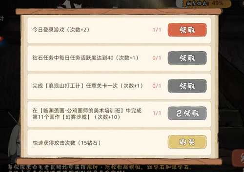 完成【浪浪山打工计】任意关卡一次(攻击次数+1)