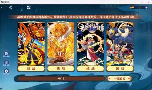 战胜每个boss可以获得2个对应零件,战胜过一次就可以开扫荡了(这感情好啊,省事)
