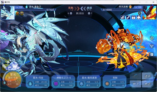 | 焰绘影 | 属性攻击 | -- | 5 | 57 | 必中;全属性+1,自身满体力时强化效果翻倍;4回合内每回合使用技能吸取对手最大体力的1/3,恢复体力时若自身体力低于最大体力的1/2则恢复效果翻倍;下2回合自身攻击技能必定致命、必定命中;下2回合令自身所有技能先制+2 | |