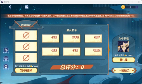 需要招募6个船员,6个船员战力总和达到2W即可过关