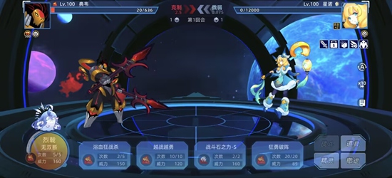 Boss特性:血量1W,必先,免疫瞬杀,封属,每回合 300 固伤,boss全能力值提升20%(相当于减伤16.7%),受到攻击消除我方能力提升状态。