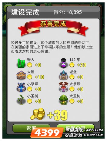 圣树传说,是一款合体消除类游戏;游戏类似Triple Town,由Dragon Sight Force Limited制作,作为一款休闲游戏, 玩家通过相同建筑之间合体升级,努力打造属于自己的城市。