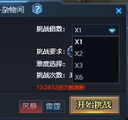 玩家可在大厅界面,消耗挑战次数获得相应难度的3次挑战耐久;