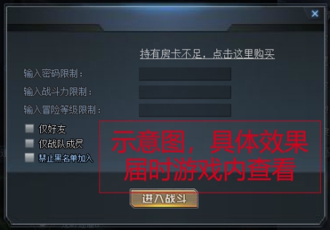 在次元裂隙、主线等关卡中,可在创建加密房间功能中,不消耗加密房卡直接创建公共房间。