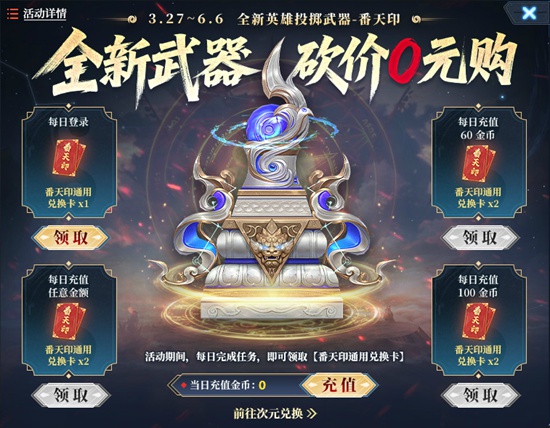 1.活动期间,每日完成对应任务,即可领取对应数量的番天印通用兑换卡;