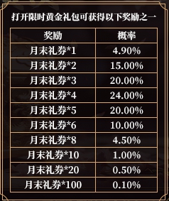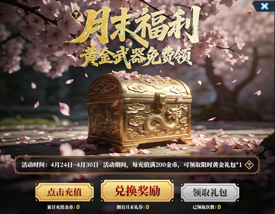 1、活动期间,每充值200金币可领取限时黄金礼包*1。
