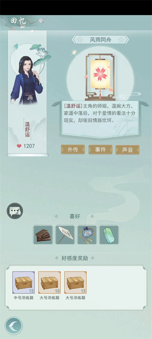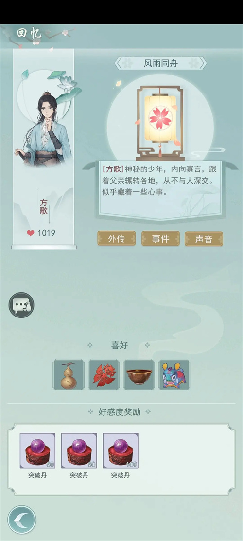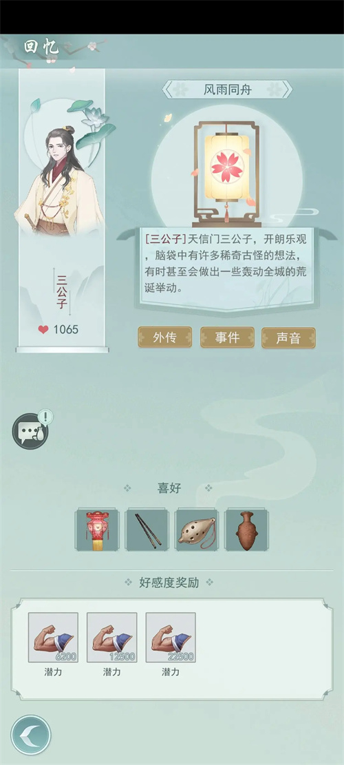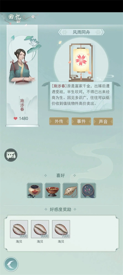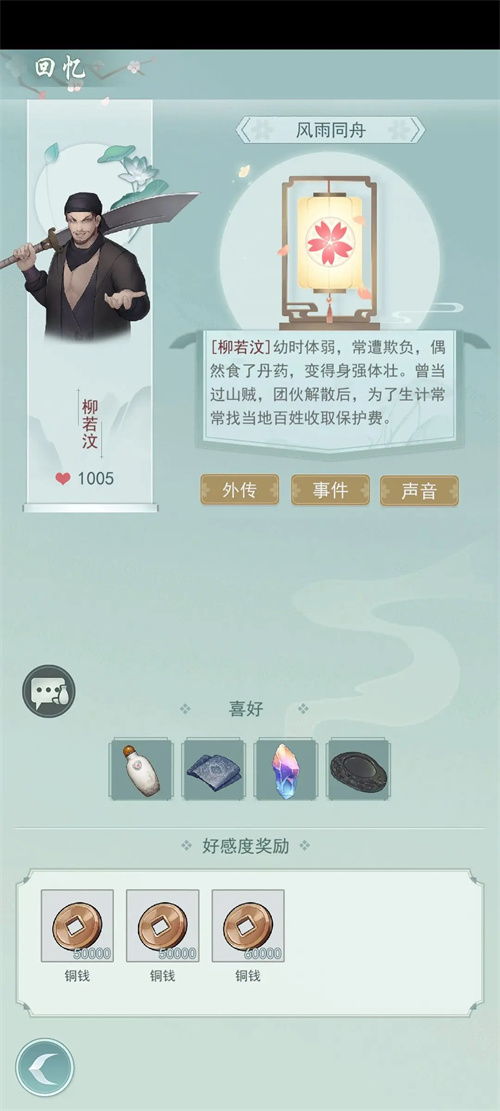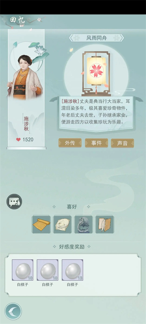 7、完成npc的邀约任务(提供道具或出行到指定地点)也会增加好感度,并获得铜钱和白棋子。