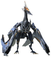 用于在战斗中提供辅助的飞行机械兽。虽然没有直接毁伤能力,但其搭载的电磁脉冲炸弹可以关停敌人的炮台和机械兽。 | |