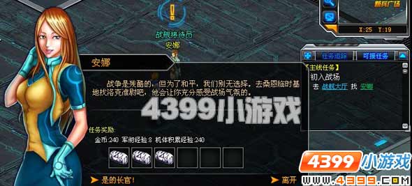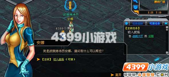 “初入战场”要去找战舰接待员安娜,通过自动寻路找到安娜后接受任务。